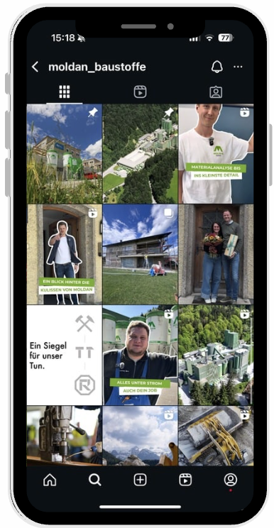 Für Moldan übernahmen wir die laufende Social-Media-Betreuung mit Fokus auf Video-Content und Reels. Durch authentische Einblicke in Produktion, Arbeitsalltag und Team wurde die Sichtbarkeit gesteigert, die Marke gestärkt und eine kontinuierliche Präsenz in der relevanten Zielgruppe aufgebaut.